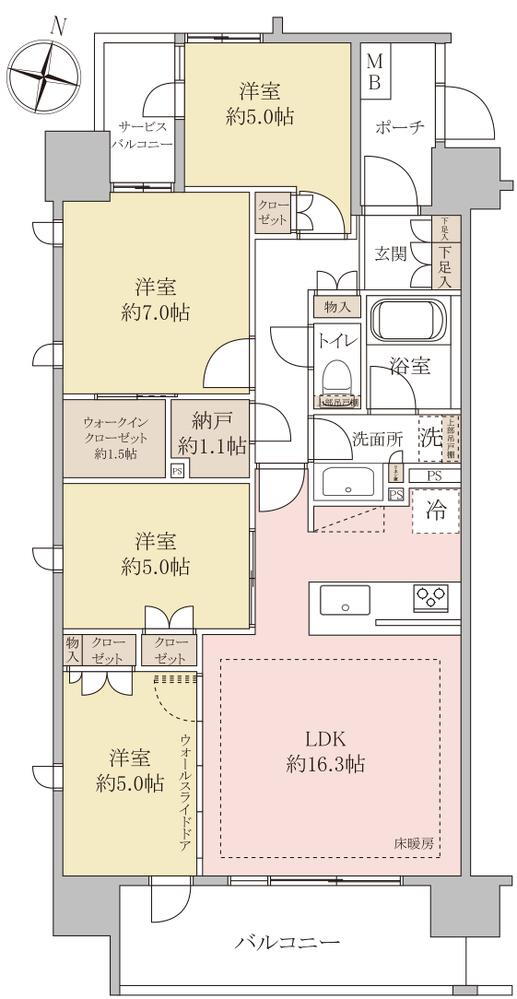 | 床暖房 | ○ | ウォークインクローゼット | ○ | 管理人常駐 | - |