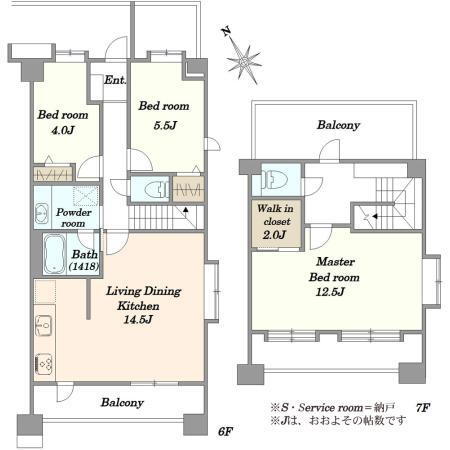 | 所在階/階数 | 6階/7階建 | バルコニー面積 | 3.95m2 |