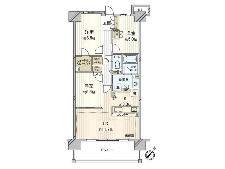 | 床暖房 | ○ | ウォークインクローゼット | ○ | 管理人常駐 | - |