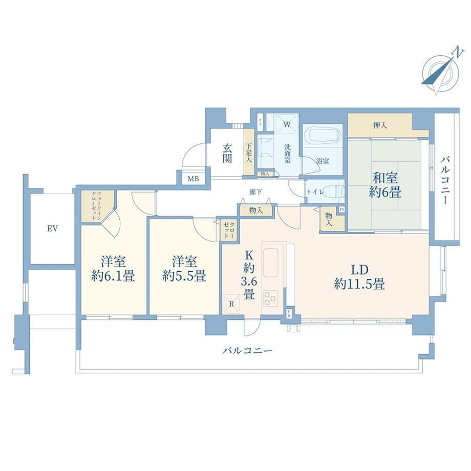 - ◇北東・南西・南東の三方角住戸 隣接住戸が少なくまわりの音が気になりにくい間取りです。◆幅約12.4mのワイドスパンなバルコニー 南側3室から出入り可能で換気・採光に優れます。また、スロップシンクも付いておりお子様の靴洗いやバルコニーでのガーデニング等に便利です。◇リビングダイニング部分 TES式床暖房採用◆各居室に収納があり、洋室(約6.1畳)にはウォークインクローゼットと、収納力豊富な間取タイプ◇1418サイズの浴室にはまたぎやすい低床式浴槽採用 浴室換気乾燥機付付◆不在時にも便利な宅配ボックス◇遮音性に配慮した約200mmの床スラブ厚と、戸境壁は約190mmのスラブ厚を確保