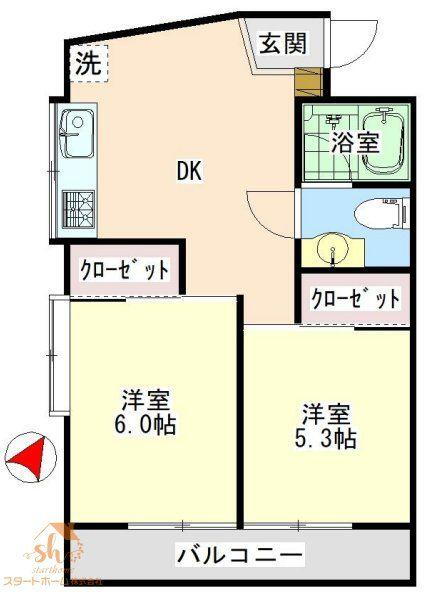 | 築年月(築年数) | 1971年6月(築54年5ヶ月) | 間取り | 2DK |