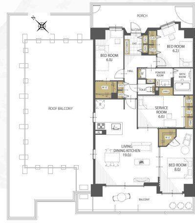 | 所在階/階数 | 8階/10階建 | バルコニー面積 | 61.26m2 |
