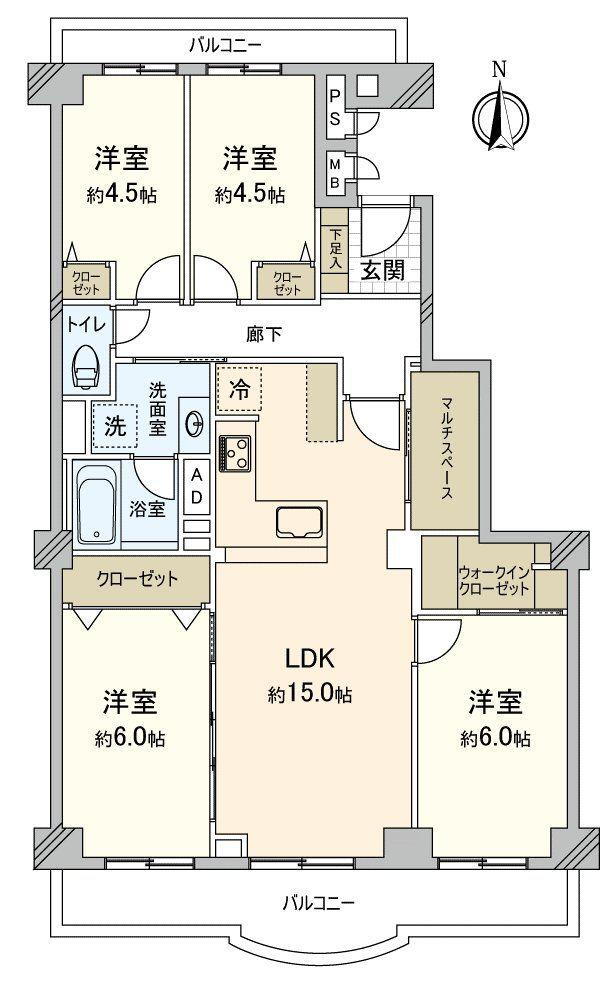 間取り 4LDK 専有面積 86.07m2(26.03坪)(壁芯)