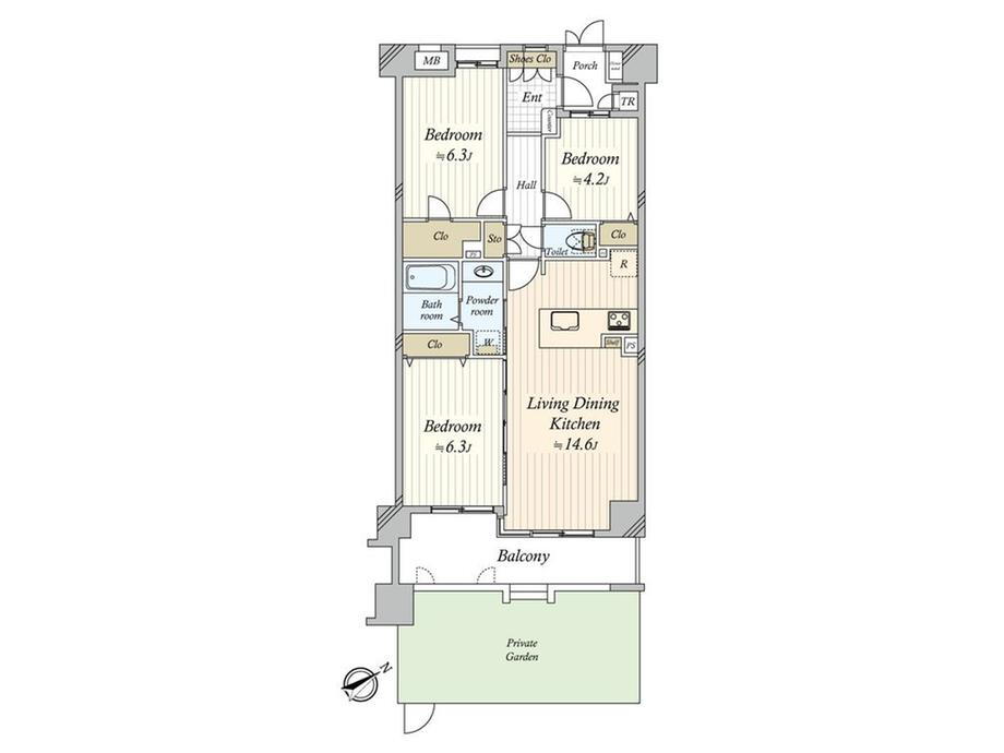 | 間取り | 3LDK | 専有面積 | 70.34m2(21.27坪)(壁芯) |