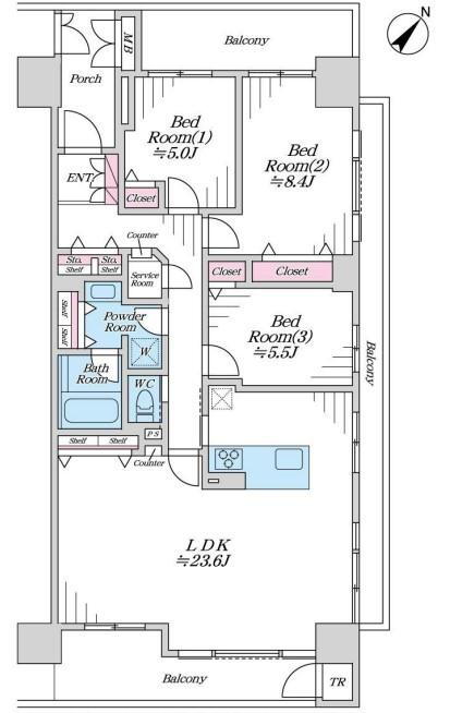 | 間取り | 3LDK | 専有面積 | 96.08m2(壁芯) |