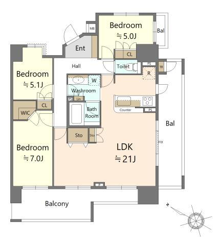| 総戸数 | 72戸 | 専有面積 | 85.47m2(25.85坪)(壁芯) |