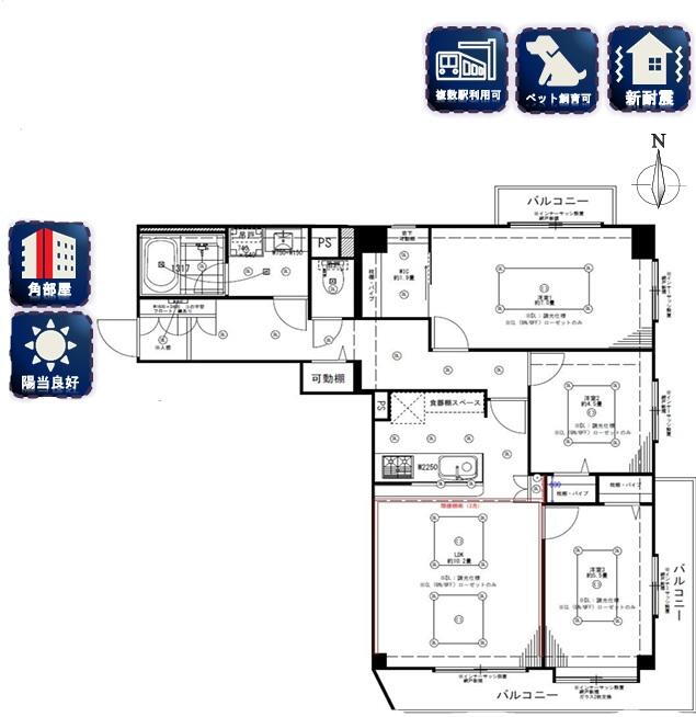 | ペット相談可 | ○ | 即入居可 | ○ | 南向き | ○ |