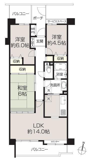 | 設備 | バルコニー・トイレ・収納スペース・洗面所・管理人日勤・シャンプードレッサ・システムキッチン・モニタ付インターホン・風呂・2面バルコニー・リフォーム・バイク置き場・駐輪場・リノベーション | ||||