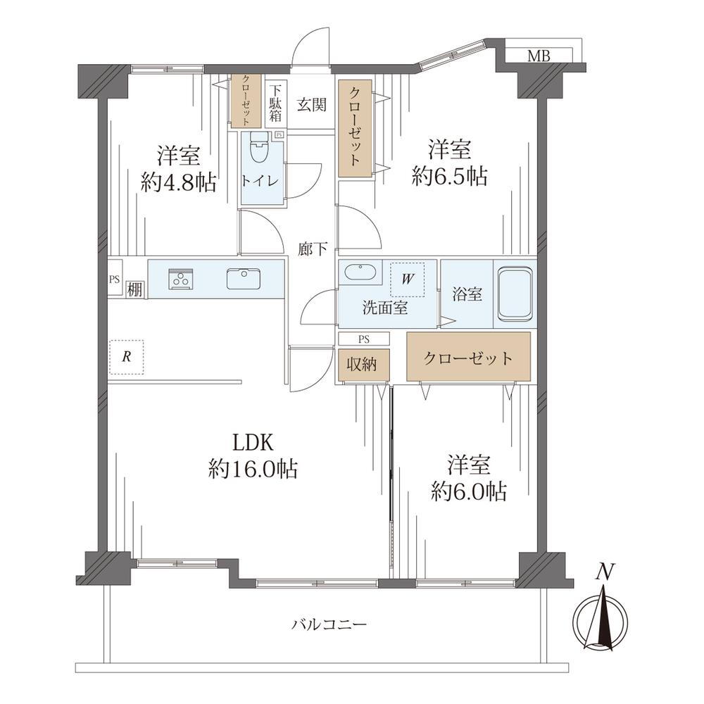 | 所在階/階数 | 3階/10階建 | バルコニー面積 | 12.44m2 |