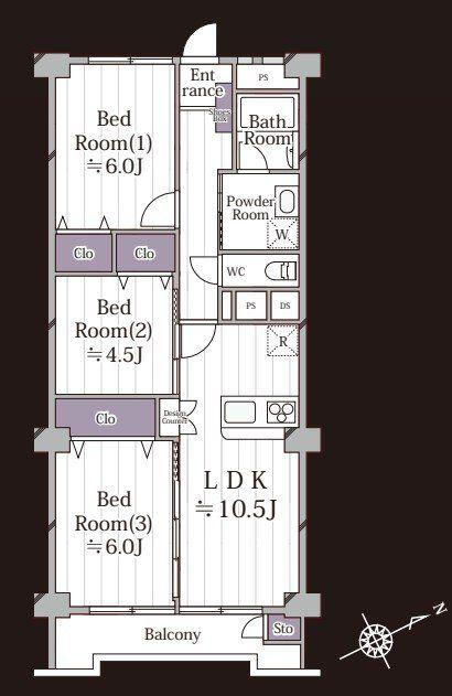 | 総戸数 | 77戸 | 専有面積 | 64.42m2(19.48坪)(壁芯) |
