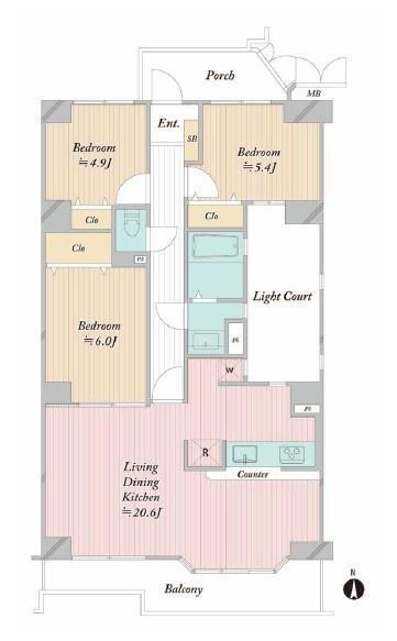 | 間取り | 3LDK | 専有面積 | 80.49m2(壁芯) |