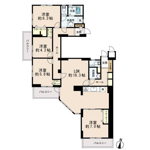 | 所在階/階数 | 4階/11階建 | バルコニー面積 | 12.82m2 |