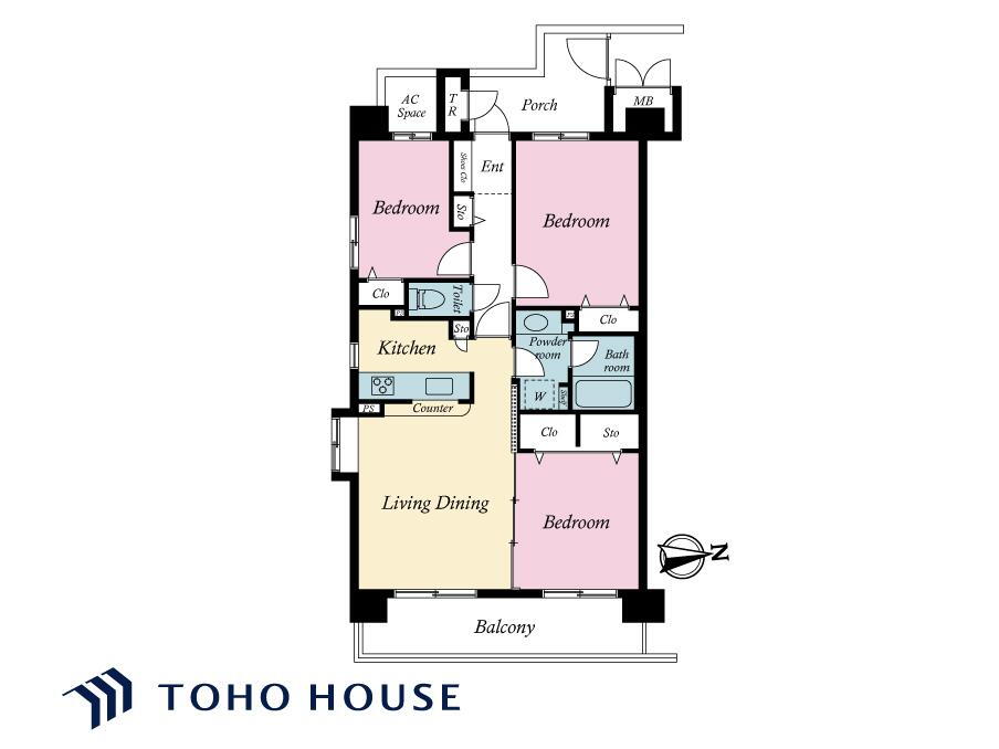 | 総戸数 | 84戸 | 専有面積 | 70.95m2(21.46坪)(壁芯) |