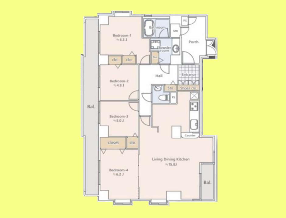 | 総戸数 | 68戸 | 専有面積 | 100.91m2(壁芯) |