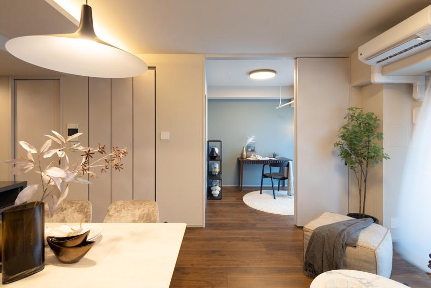 - ○2016年竣工×総戸数121戸の大規模レジデンス○パナホーム(株)分譲、(株)安藤・間施工○ペット飼育可(飼育細則有)グッドデザイン22回受賞歴のある新築供給実績10万戸以上創業50周年を迎えたコスモスイニシアのリノベーション■リビング家族の暮らし方に合わせて空間を変えられるフレキシブルリビング。リビングと洋室の間のスライドウォールを開けば開放感のある空間で家族と一緒に過ごせる。閉じればプライベートな空間に。■キッチンキッチン前の壁をなくしたオープンな空間。リビングダイニングの中に家具のように映える、オリジナルのシーナリーキッチン。食洗機・浄水器付きです。