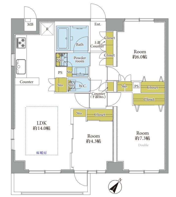 エレベーター・管理人日勤・モニタ付インターホン・床暖房 |