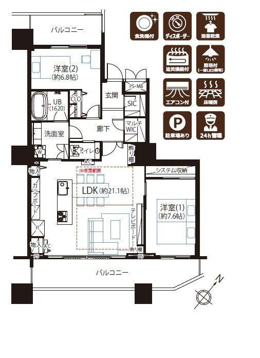 | 床暖房 | ○ | ウォークインクローゼット | ○ | 管理人常駐 | ○ |