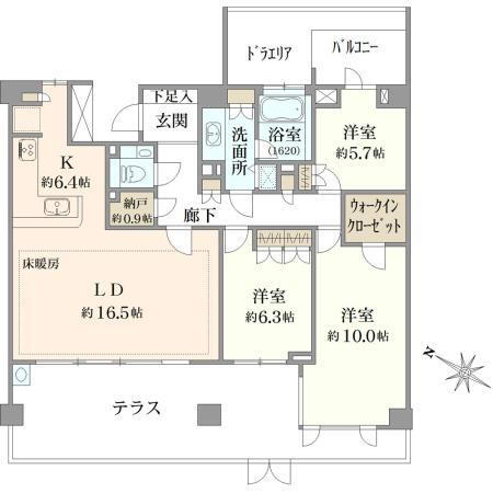 バルコニー・エレベーター・管理人日勤・浴室乾燥機・ウォークインクローゼット・モニタ付インターホン・風呂・テラス・対面K・床暖房・衣類乾燥機・宅配BOX・キッズルーム |