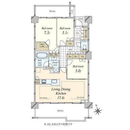 - ■3LDK+WIC、81.06m2、トランクルーム■新規リフォーム物件(2025年9月末日完成予定)■約7.3帖のゆとりある主寝室、WIC付■6階部分南西向きにつき陽当たり良好■南側・北側の両面バルコニー■1620サイズのゆとりのある浴室■LDに温水式床暖房■ディスポーザー・食洗器