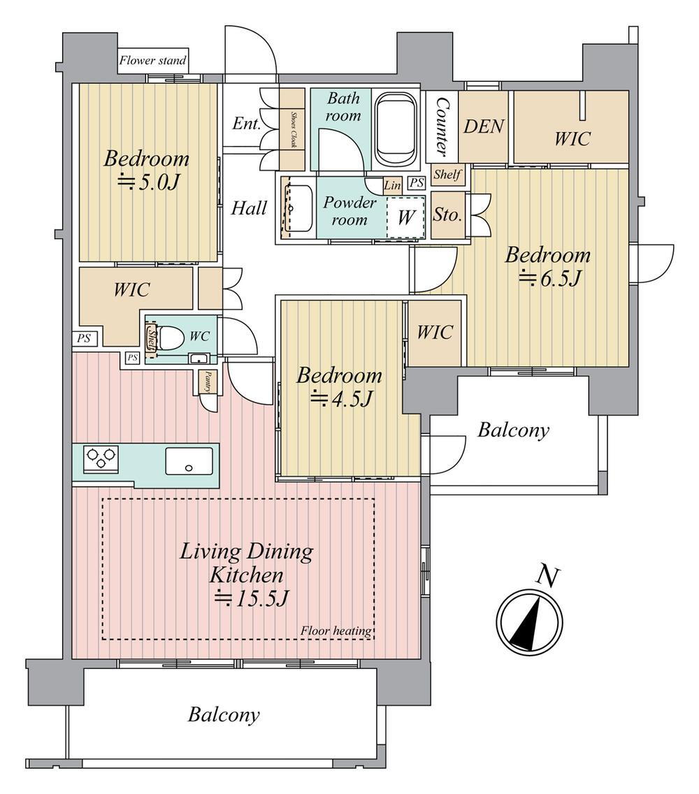 バルコニー・収納スペース・エレベーター・管理人日勤・浴室乾燥機・ウォークインクローゼット・システムキッチン・モニタ付インターホン・風呂・対面K・床暖房・2面バルコニー・衣類乾燥機・食器洗浄乾燥機・宅配BOX |