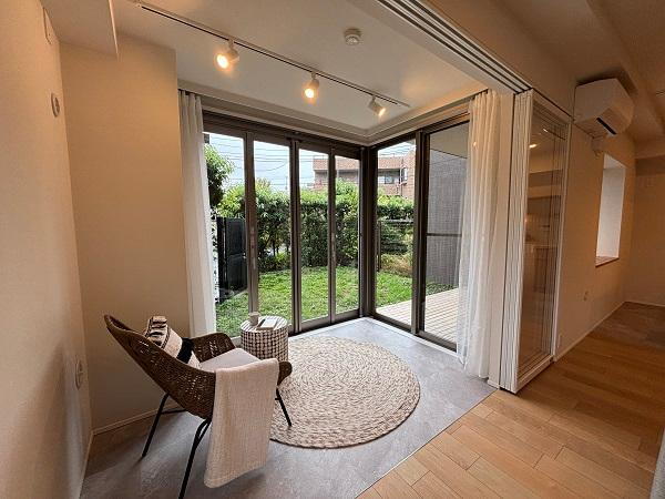 - 明るいインナーテラス付きの3LDKデザイナーズフルリノベーション物件♪第一種低層住居専用地域に佇む低層レジデンス。デザイナーズリノベで木×タイル×間接照明が映える上質空間。1階ならではの専用テラス18.29㎡・専用庭58㎡超がLDと連なり、緑を眺めて寛げます。13.5帖LDKと回遊性の高いキッチン、パントリーで家事もスマート。3LDKの柔らかな内装は在宅ワークや子育てにも万能。桜上水徒歩7分・上北沢徒歩8分、穏やかさと利便を両立する素敵な一邸です。