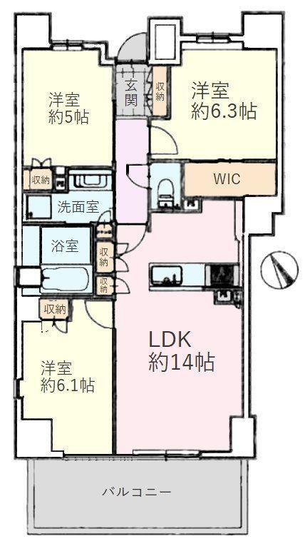 | 所在階/階数 | 3階/14階建 | バルコニー面積 | 11.28m2 |