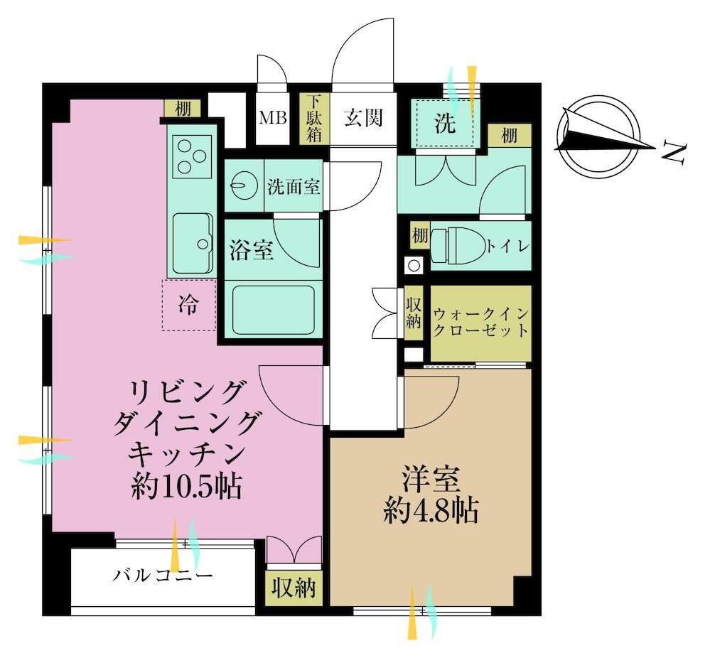 間取り 1LDK 専有面積 42.43m2(壁芯)