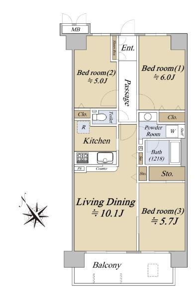 | 総戸数 | 54戸 | 専有面積 | 64.96m2(19.65坪) |