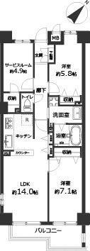 | 所在階/階数 | 5階/7階建 | バルコニー面積 | 6.6m2 |