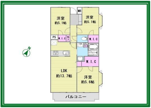 所在階/階数 3階/5階建 バルコニー面積 9.15m2