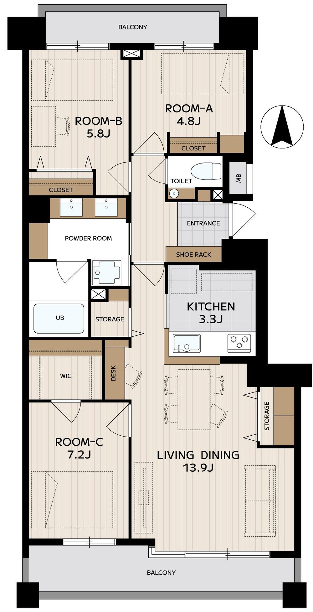 間取り 3LDK 専有面積 80.62m2(壁芯)