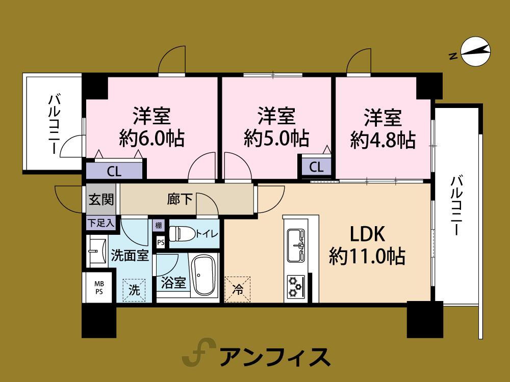 | 総戸数 | 255戸 | 専有面積 | 58.5m2(17.69坪)(壁芯) |