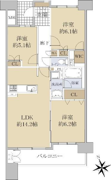 | 所在階/階数 | 12階/14階建 | バルコニー面積 | 10.91m2 |