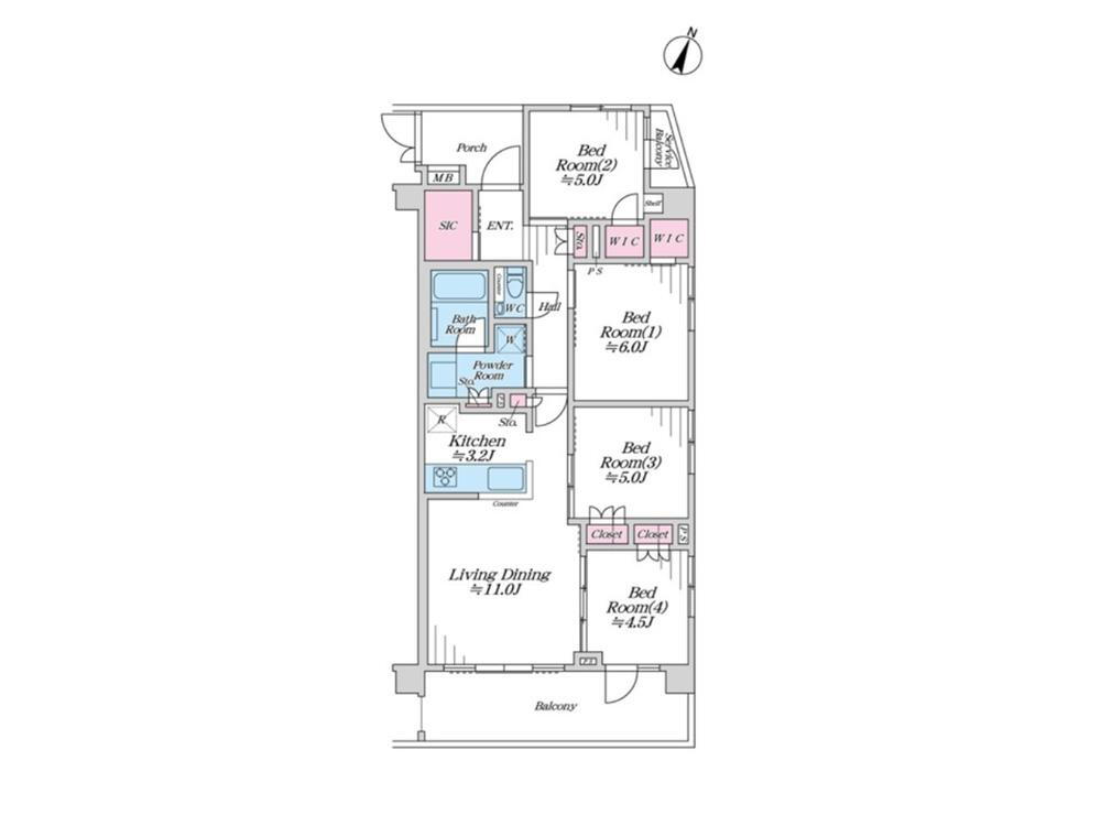 | 所在階/階数 | 4階/5階建 | バルコニー面積 | 11.52m2 |