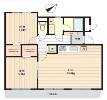 間取り 2LDK 専有面積 58.77m2