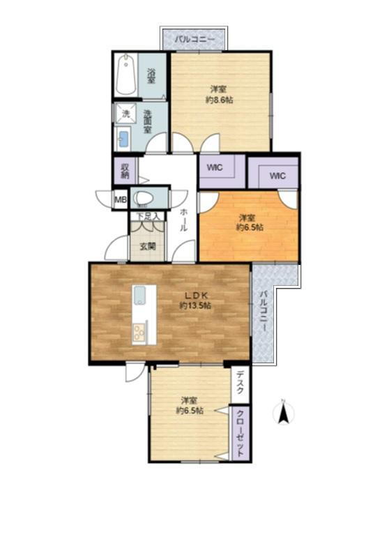 | 所在階/階数 | 1階/3階建 | バルコニー面積 | 7.98m2 |
