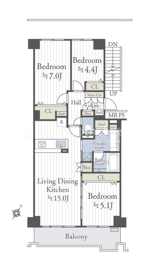 | 所在階/階数 | 4階/11階建 | バルコニー面積 | 8.64m2 |