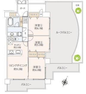 | 所在階/階数 | 7階/10階建 | バルコニー面積 | 66.96m2 |