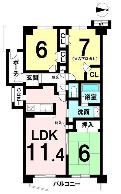 | 間取り | 3LDK | 専有面積 | 72m2(21.77坪)(壁芯) |