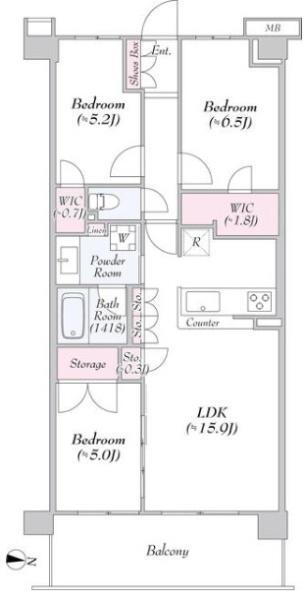 | 所在階/階数 | 1階/5階建 | バルコニー面積 | 12m2 |