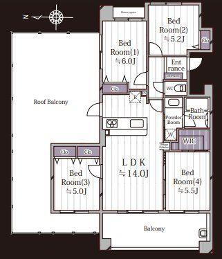 | 総戸数 | 56戸 | 専有面積 | 75.16m2(22.73坪)(壁芯) |