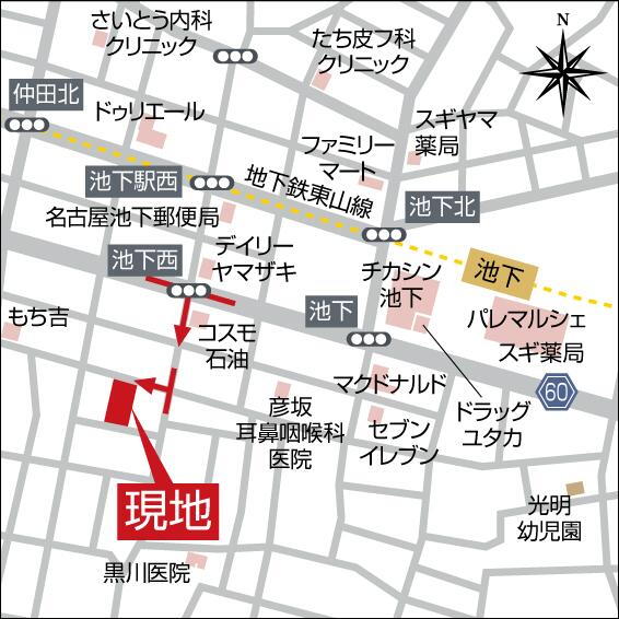 - ■地下鉄東山線「池下」駅まで徒歩約6分■春岡小学校まで徒歩約3分■若水中学校まで徒歩約16分■春風ピッコロ保育園まで徒歩約4分■サンエースまで徒歩約4分■パレマルシェまで徒歩約8分■丸山公園まで徒歩約9分