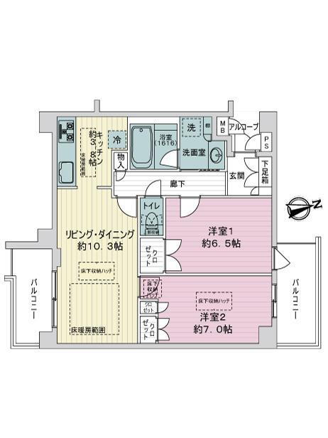 - ・2層構造により上下階の音漏れを軽減します。また、採光・通風に優れたハイサッシの採用など、快適な毎日が過ごせます。・居室間だけでなく、水廻りも段差をなくしたフルフラット設計で、安全にお住まいいただけます。・LDと洋室1には、深さ60cmの床下収納があります。シーズンものから小物類まで幅広く整頓・収納できます。・LDとキッチンにはガス温水式床暖房が設置されており、足元から室内全体を優しく暖めてくれます。・ゆとりのある1616サイズの浴室は、くつろぎのバスタイムをお過ごしいただけます。