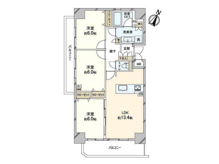| 所在階/階数 | 4階/12階建 | バルコニー面積 | 13.88m2 |