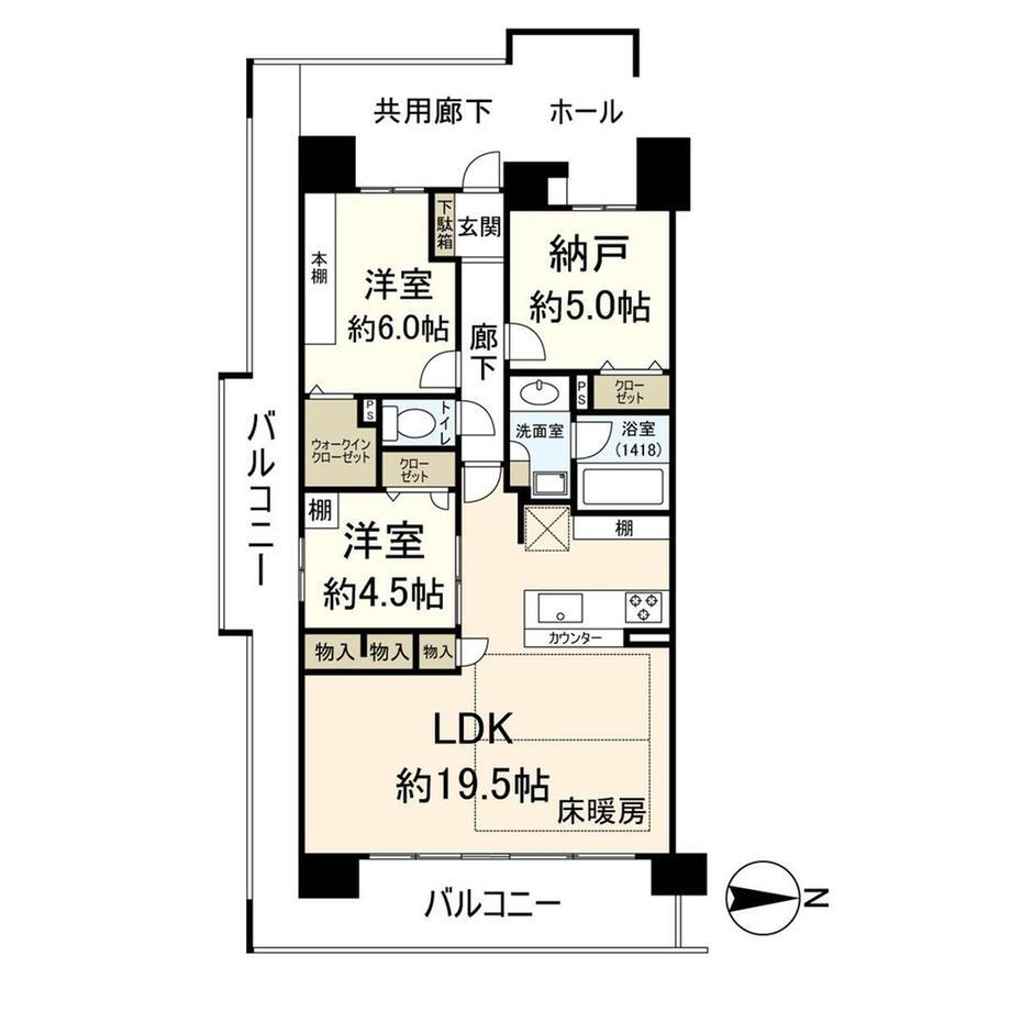 バルコニー・収納スペース・エレベーター・管理人日勤・ウォークインクローゼット・対面K・床暖房・2面バルコニー |