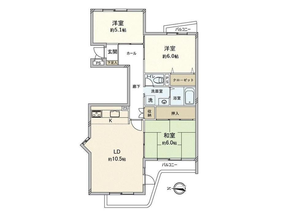 | 所在階/階数 | 5階/5階建 | バルコニー面積 | 10.53m2 |