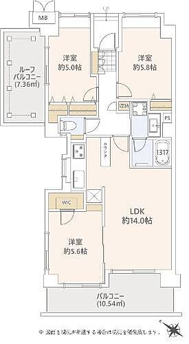 | 所在階/階数 | 5階/6階建 | バルコニー面積 | 10.56m2 |