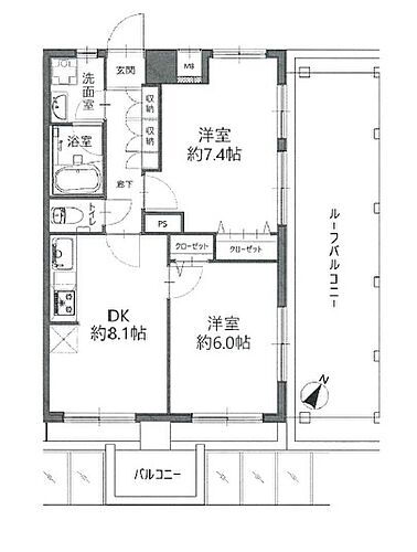 | 所在階/階数 | 2階/8階建 | バルコニー面積 | 11.04m2 |