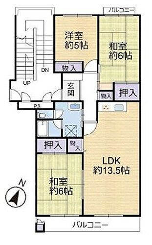 | 所在階/階数 | 5階/5階建 | バルコニー面積 | 8.95m2 |