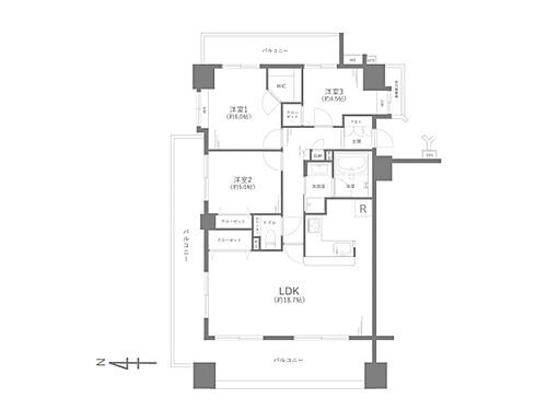 | 所在階/階数 | 6階/6階建 | バルコニー面積 | 35.52m2 |